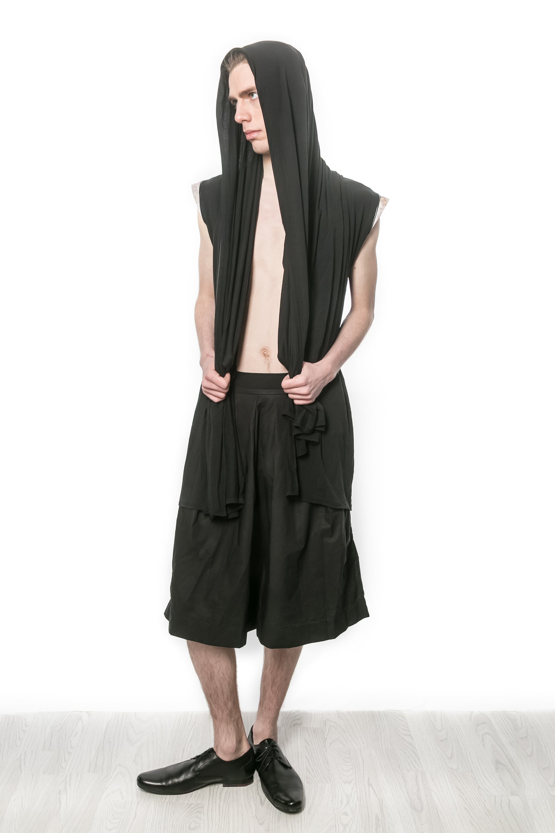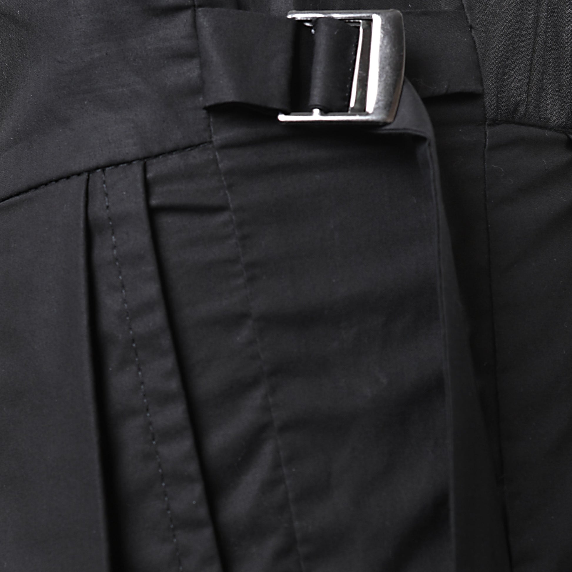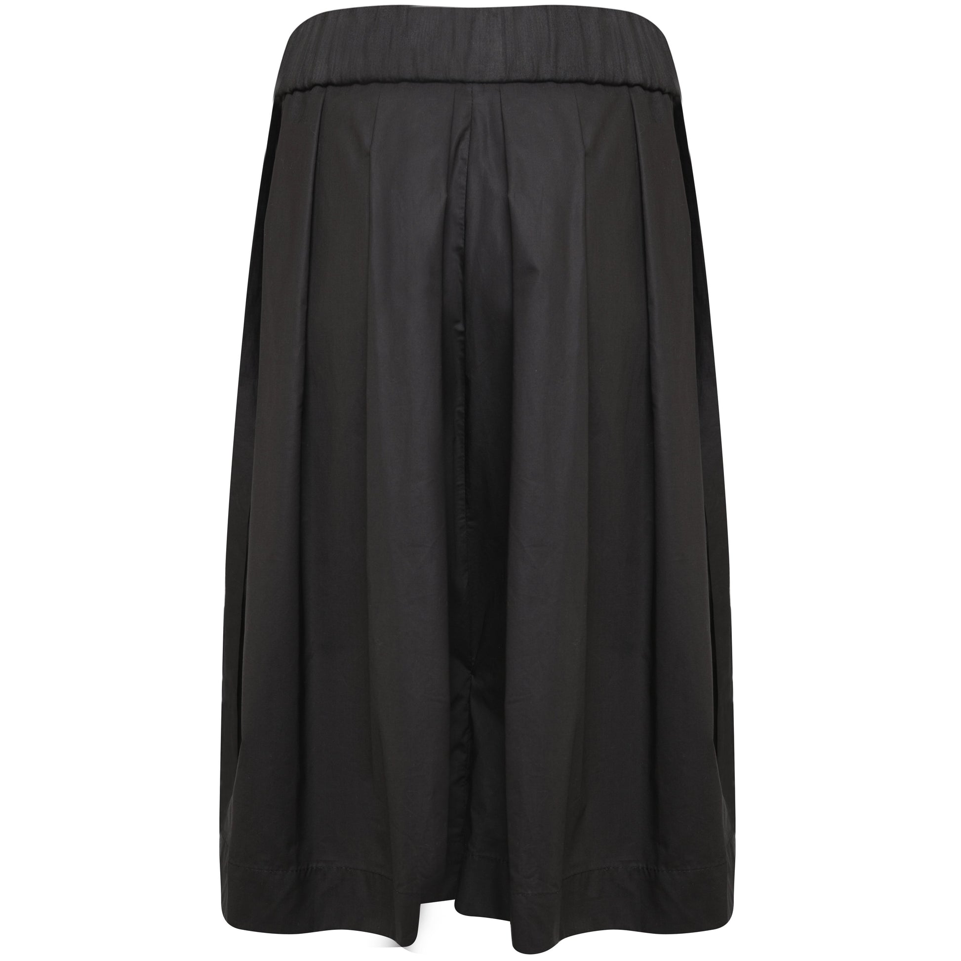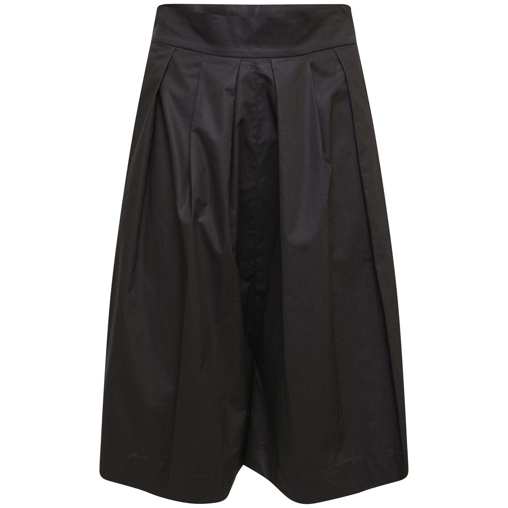 Low-rise, low-hip 3/4 length culottes in beautifully soft to touch, low-sheen black cotton sateen, featuring deep box pleats on the front and back.