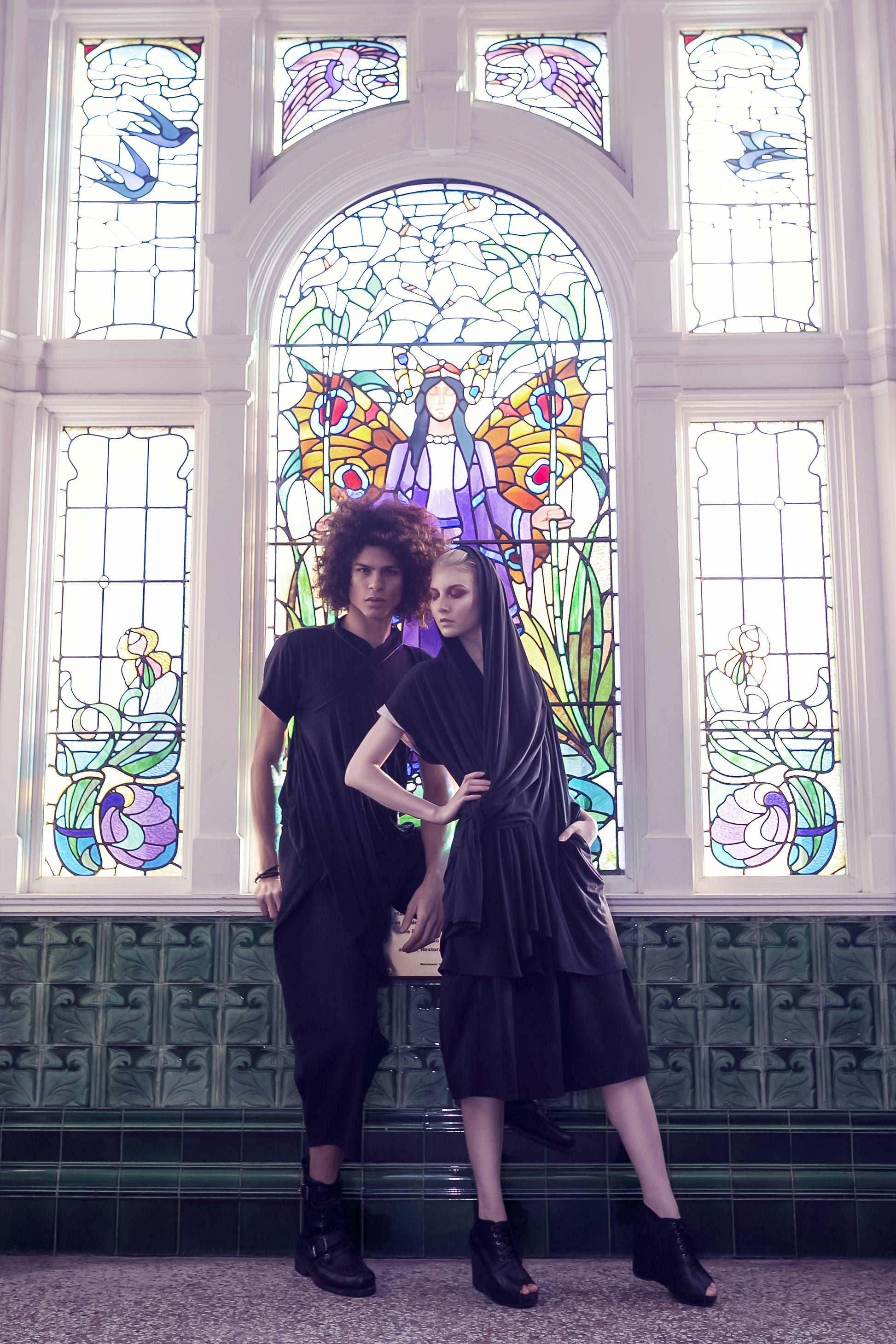 The male models are 6'2 and 6'1, the female models are both 5'8.
