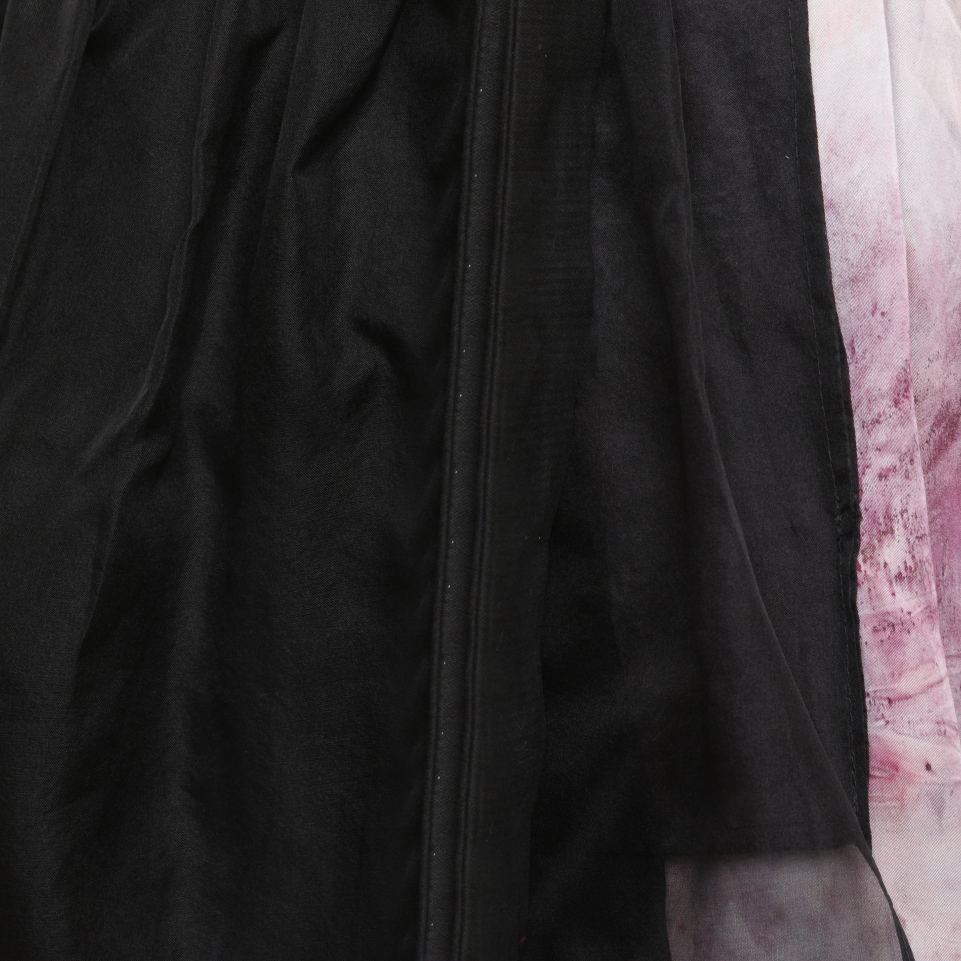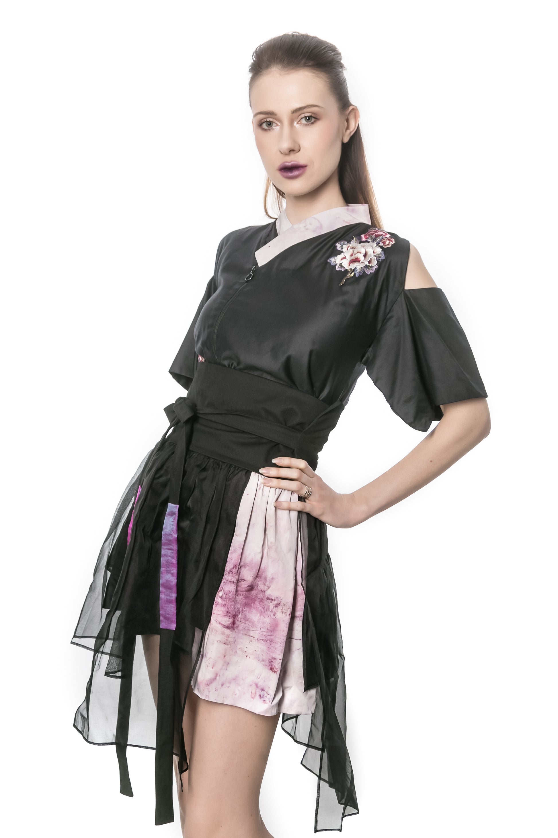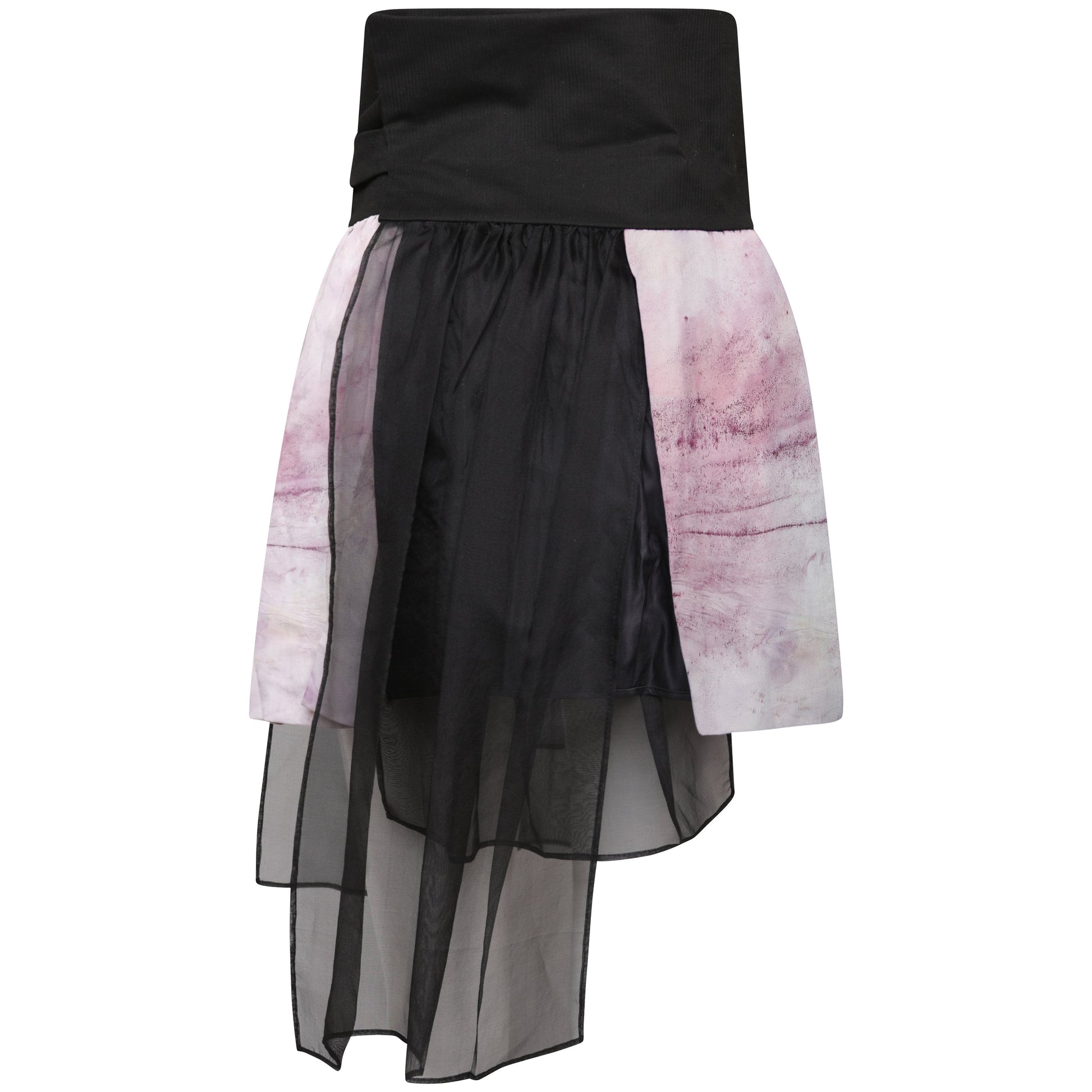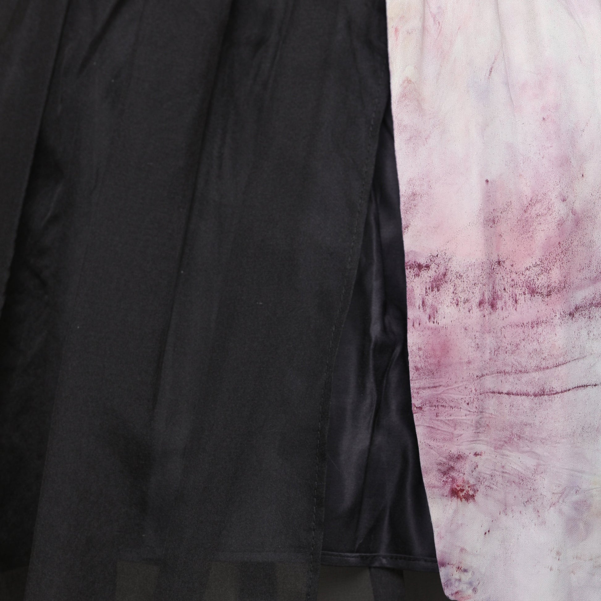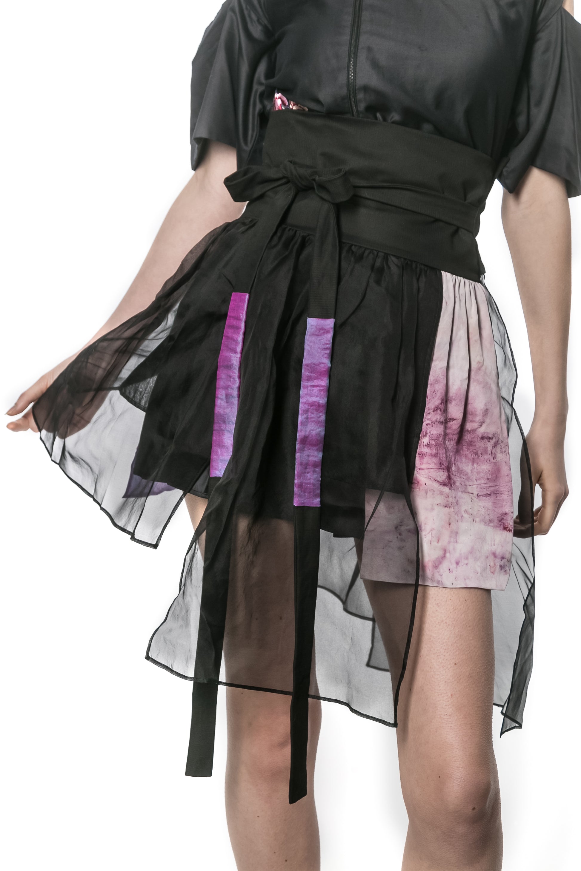 This cute miniskirt features multiple layers of fabrics of hand-dyed bamboo silk , pure silk organza and black bamboo silk. Adorable and unique, a definitive head-turner! It is a wrap-around skirt so adjustable to the most comfortable fit for you.