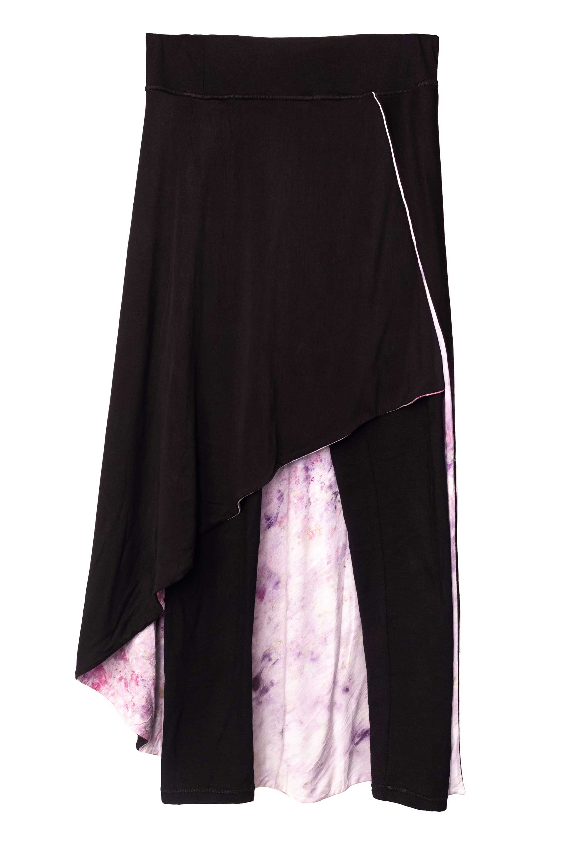 Made with snuggly and soft to skin organic cotton jersey and the softest Tencel jersey on the overskirt. The leggings are not elasticated on top with extra wide waist band for extra comfort. The overskirt, of course, has the hand-dyed fabric in beautifully lightweight Tencel jersey. Each step you take will flash the stunning vibrancy!