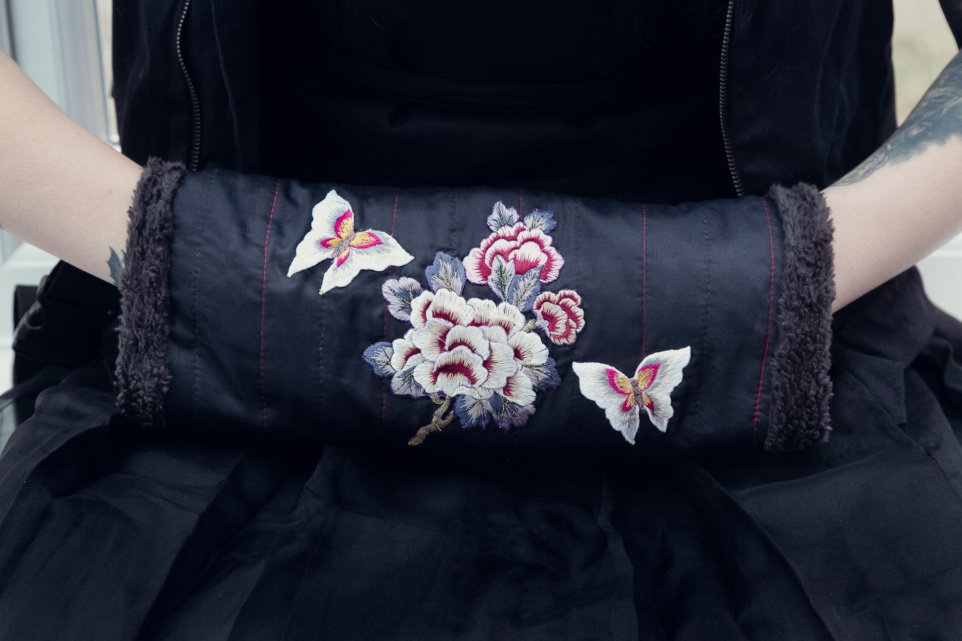 All items available are lovingly handmade with meticulously sewn 3D peony patch and butterfly patches for Korean traditional Hanbok adornments.
